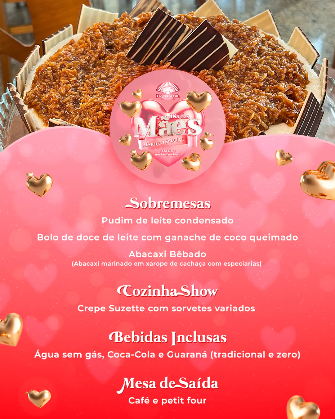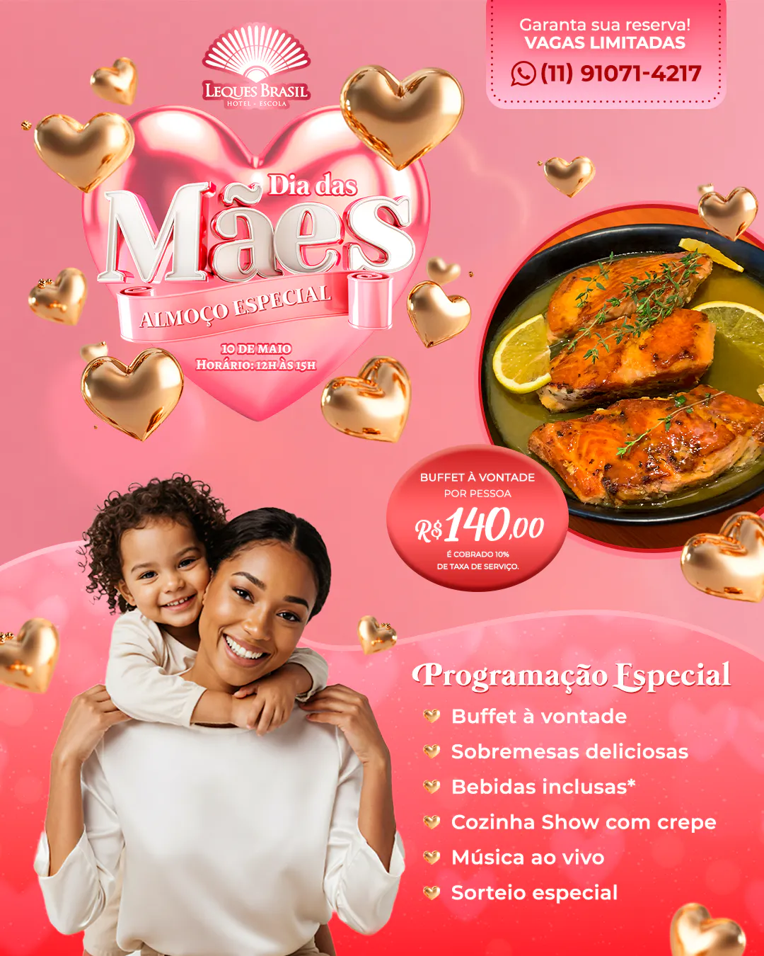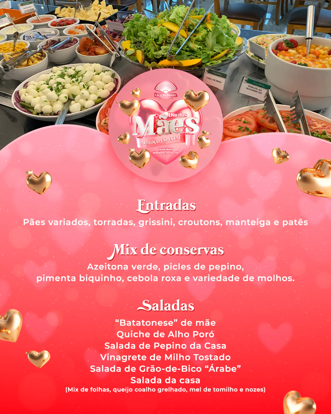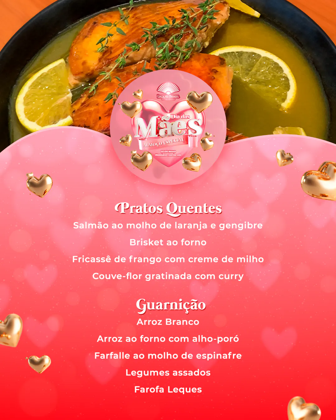 Garanta já o seu lugar no Almoço de Dia das Mães no Leques Brasil e transforme o seu domingo em um momento especial!