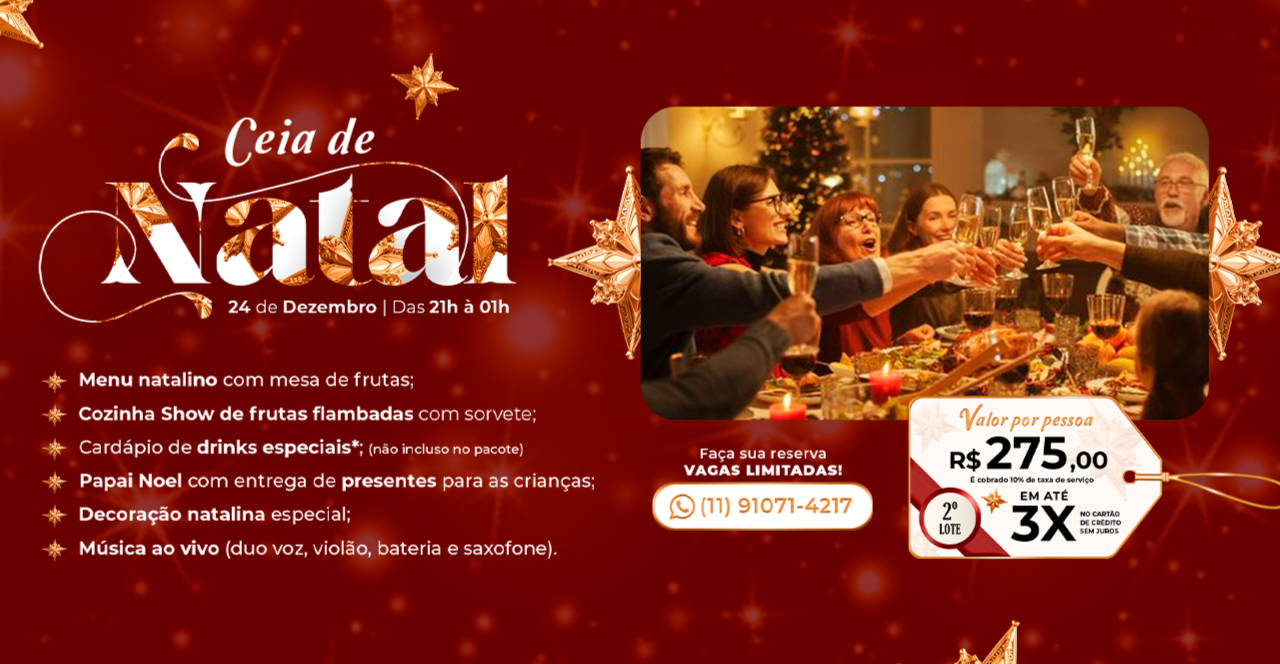 2º LOTE R$275,00 + 10% de taxa de serviço – VALOR POR PESSOA
