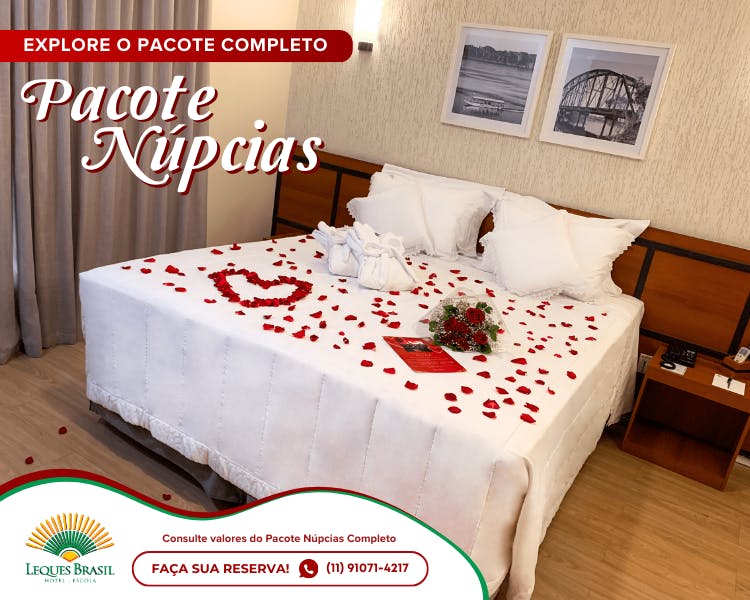 Com um enxoval especial, pétalas de rosas, um buquê encantador e um cartão de boas-vindas, cada detalhe reflete cuidado e carinho. Viva sua noite especial com conforto e elegância, em um cenário perfeito para criar memórias que durarão para sempre.