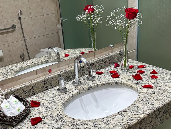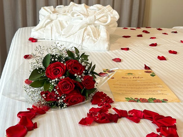 Com um enxoval especial, pétalas de rosas, um buquê encantador e um cartão de boas-vindas, cada detalhe reflete cuidado e carinho. Viva sua noite especial com conforto e elegância, em um cenário perfeito para criar memórias que durarão para sempre.