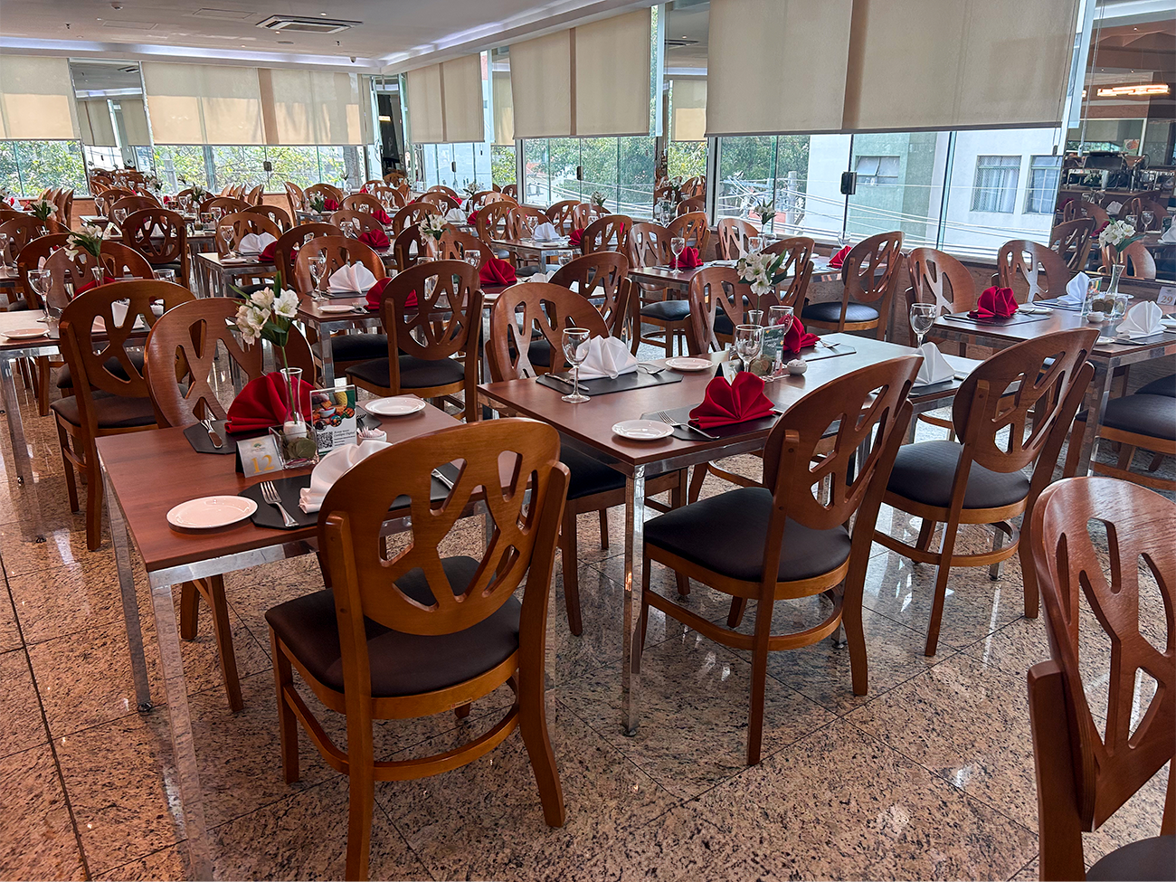 Com uma cozinha moderna e totalmente equipada, temos um rigoroso cuidado na manipulação dos alimentos, garantindo segurança e qualidade em cada preparo. Estamos prontos para atender às mais variadas ocasiões: seja no restaurante, com cafés, almoços e jantares excepcionais; no serviço de room service, que leva sabor e conforto até o seu quarto; ou nos eventos do hotel, onde nossa cozinha se destaca com opções gourmet de excelência.