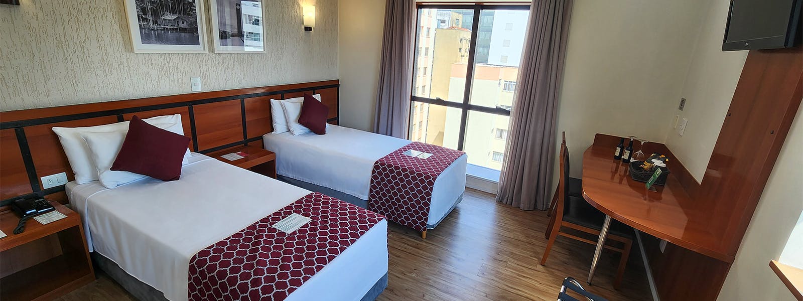 Nosso quarto Superior Twin com café da manhã oferece o equilíbrio perfeito entre conforto e praticidade para quem viaja a trabalho ou lazer.